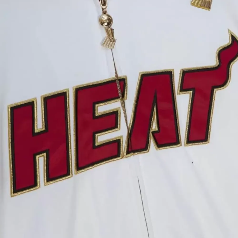 Relive The “Big Three” Dynasty’S First Trophy Together With The Authentic 2012 Championship Miami Heat Jacket.