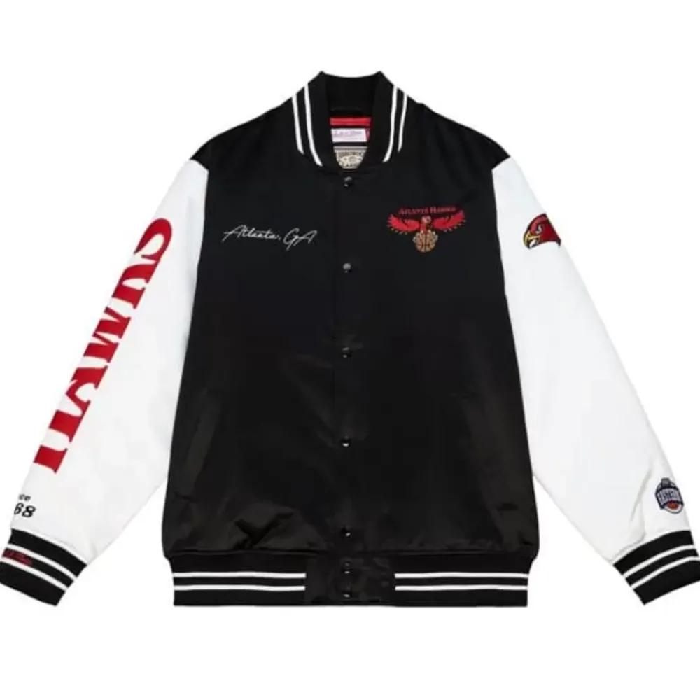 Apparel Mitchell & Ness Jackets & Outerwear-Team Origins Varsity Satin Jacket Atlanta Hawks