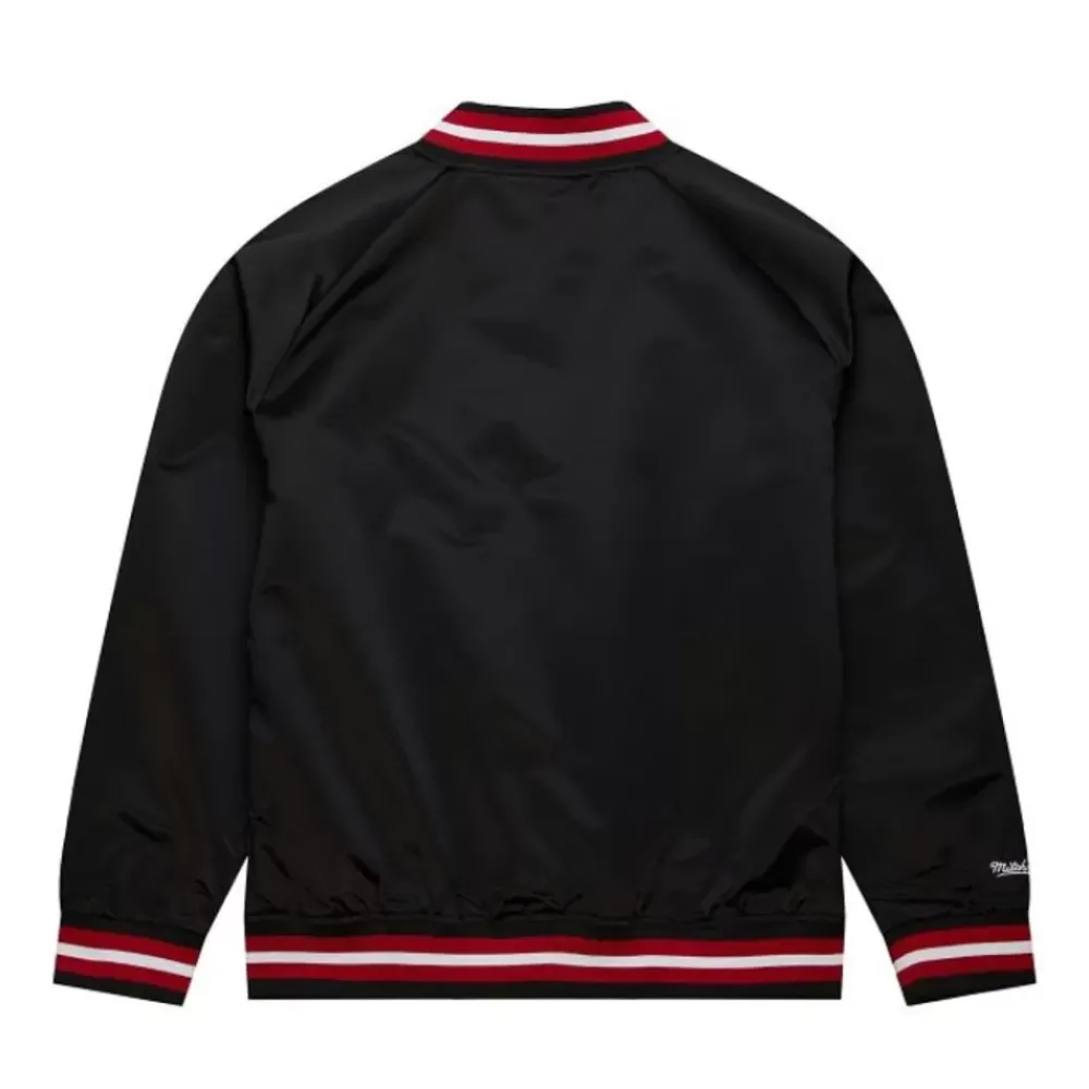 The Nba Lightweight Satin Jacket. This Iconic Silhouette Features A Tailored Fit And Is Crafted With 100% Polyester, 1X1 Rib Trim At Collar And Sleeve Hem, And Shirttail Hem. An Embroidered Tackle Twill Logo Is Stitched At The Center Chest And A Mitchell & Ness Woven Jocktag Is Located On The Lower Left Hem.