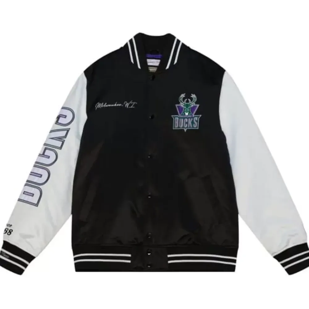 Apparel Mitchell & Ness Jackets & Outerwear-Team Origins Varsity Satin Jacket Milwaukee Bucks