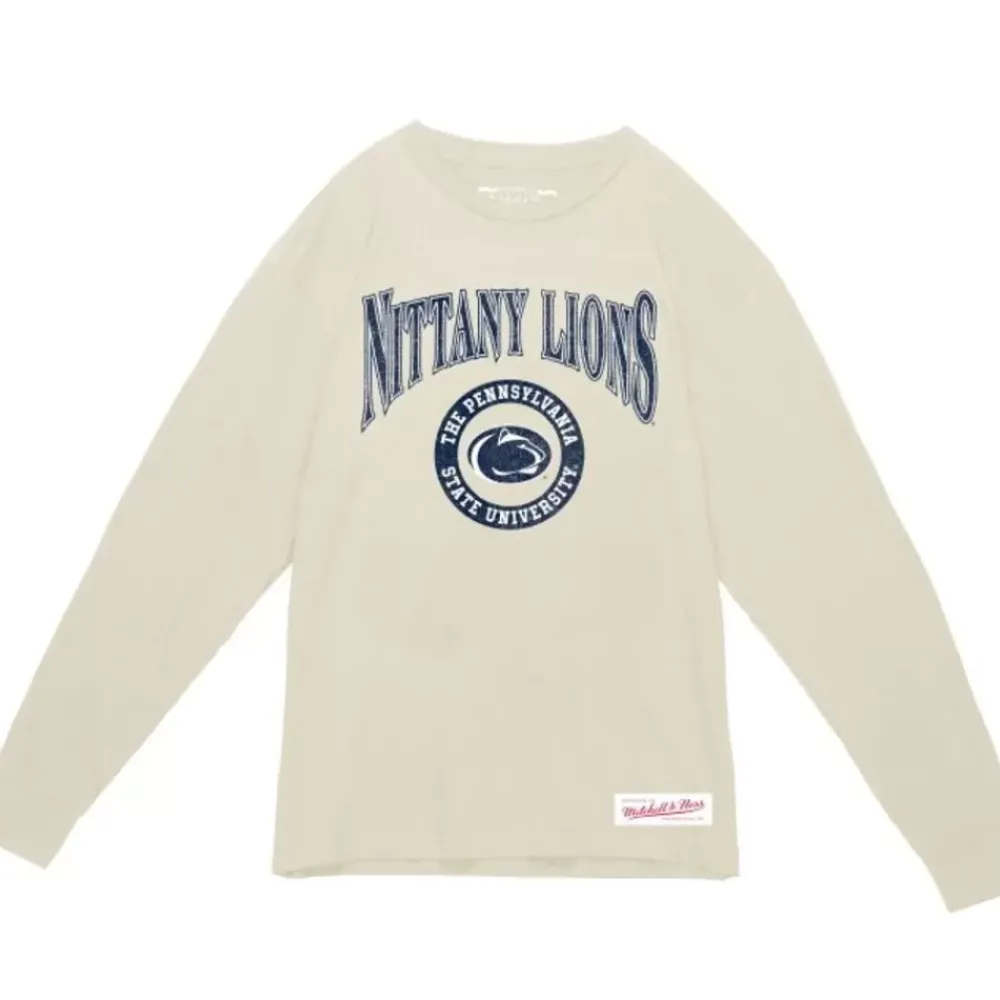 Apparel Mitchell & Ness T-Shirts & Tops-Arched Logo Lockup Slub Ls Tee Penn State University
