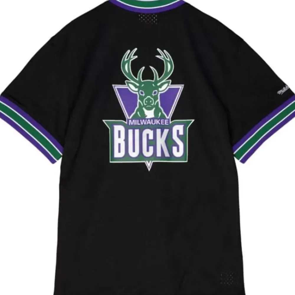 Apparel Mitchell & Ness T-Shirts & Tops-Mesh 1/4 Zip Milwaukee Bucks