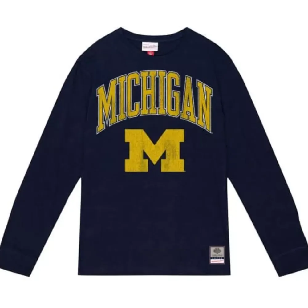 Apparel Mitchell & Ness T-Shirts & Tops-University Arch Logo Ls Tee University Of Michigan